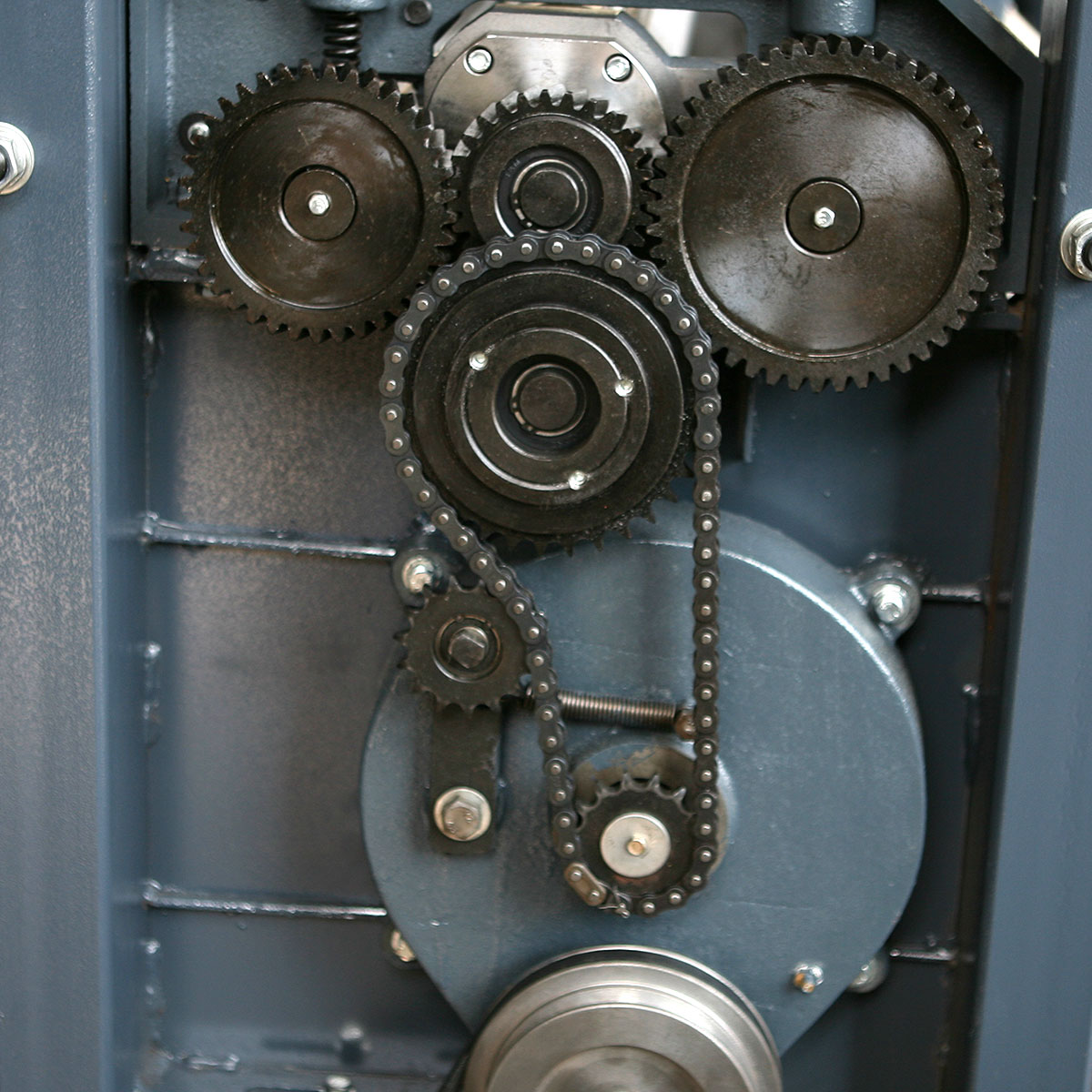 Косой зуб питающего ролика из литой стали обеспечивает беспрепятственную подачу Горизонтальное пылеулавливание
